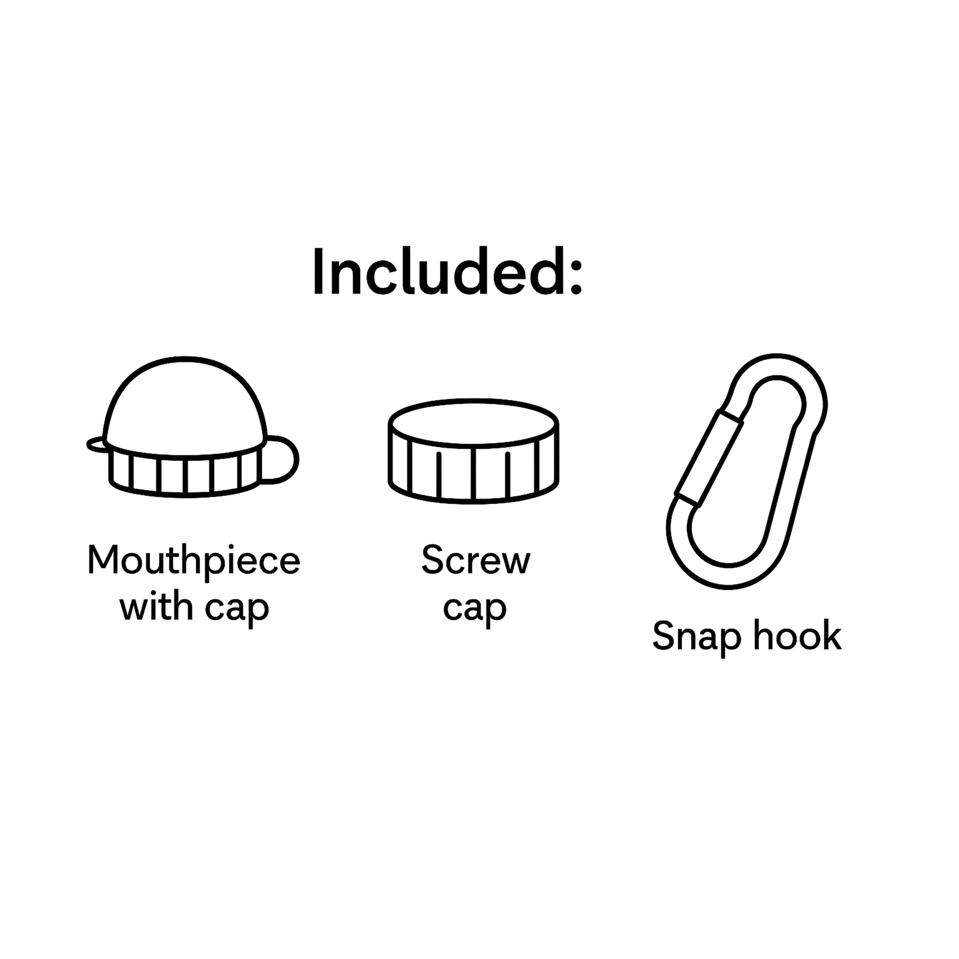 🧢 3-in-1 cap system included – each bottle comes with a mouthpiece with cap, a screw cap, and a snap hook so it can be easily clipped to a backpack 🎒